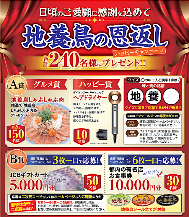全国地養鳥協会「地養鳥 ハッピーキャンペーン」係へ